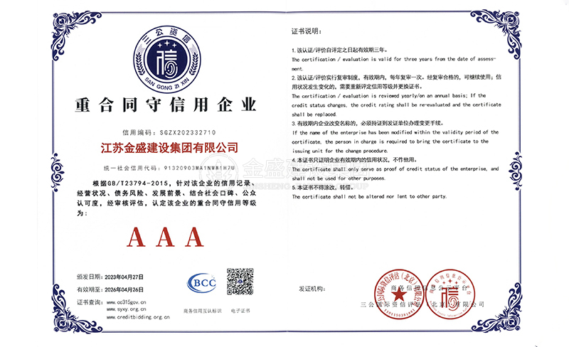 • 3A級(jí)資信等級(jí)證書