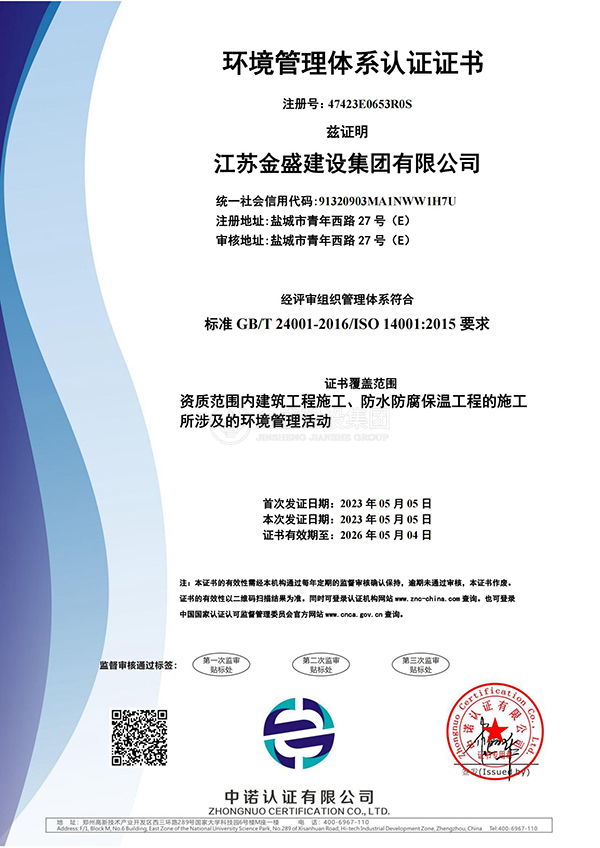 • 環(huán)境管理體系認(rèn)證證書